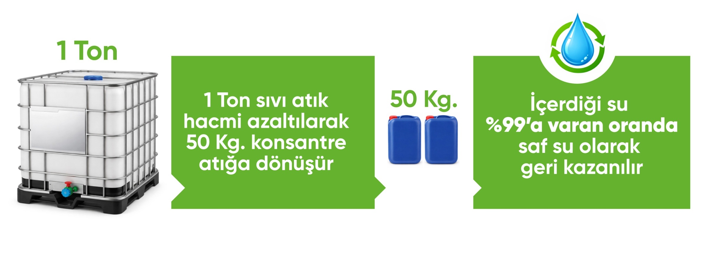 Sıvı atıkları buharlaştırarak konsantre ediyor, %99’a varan oranlarda içerdiği suyu geri kazanıyoruz.